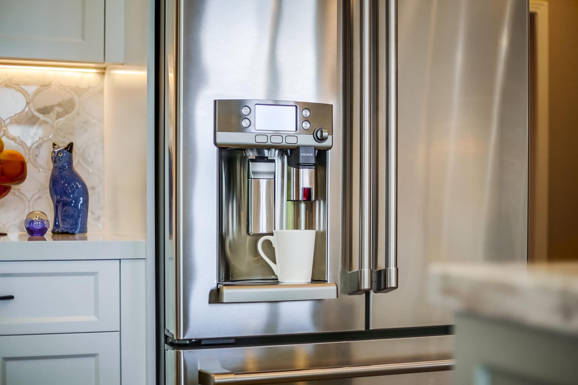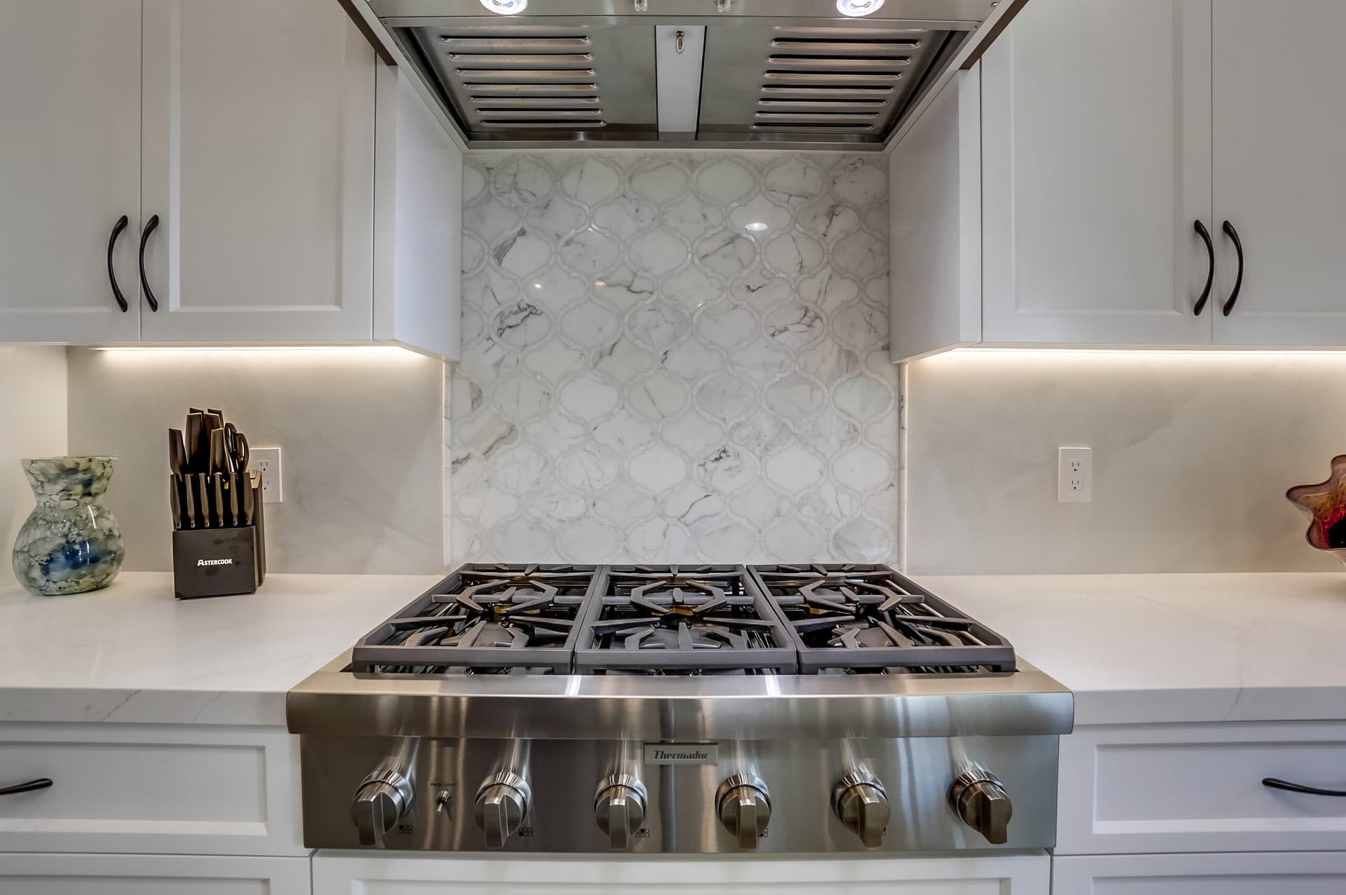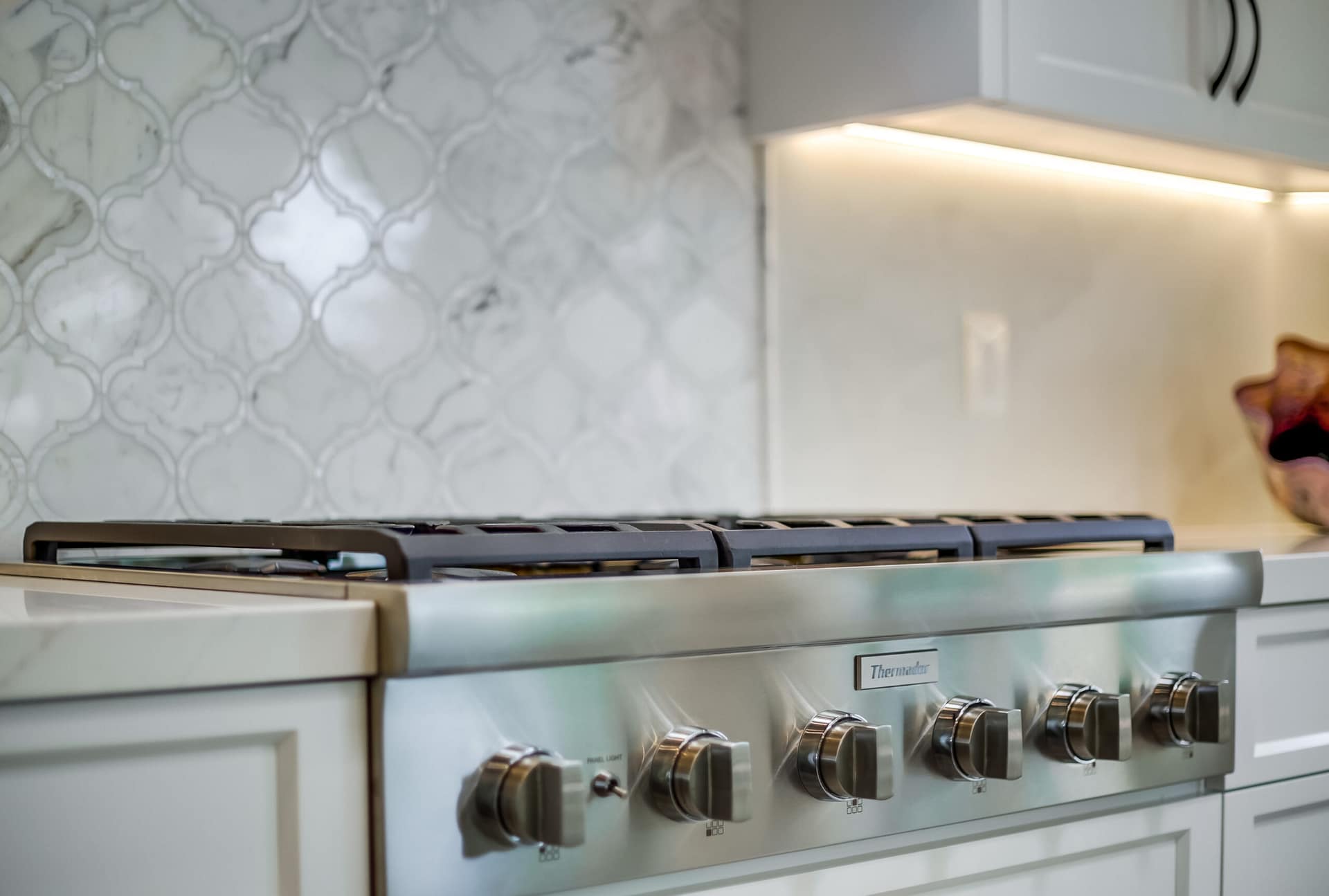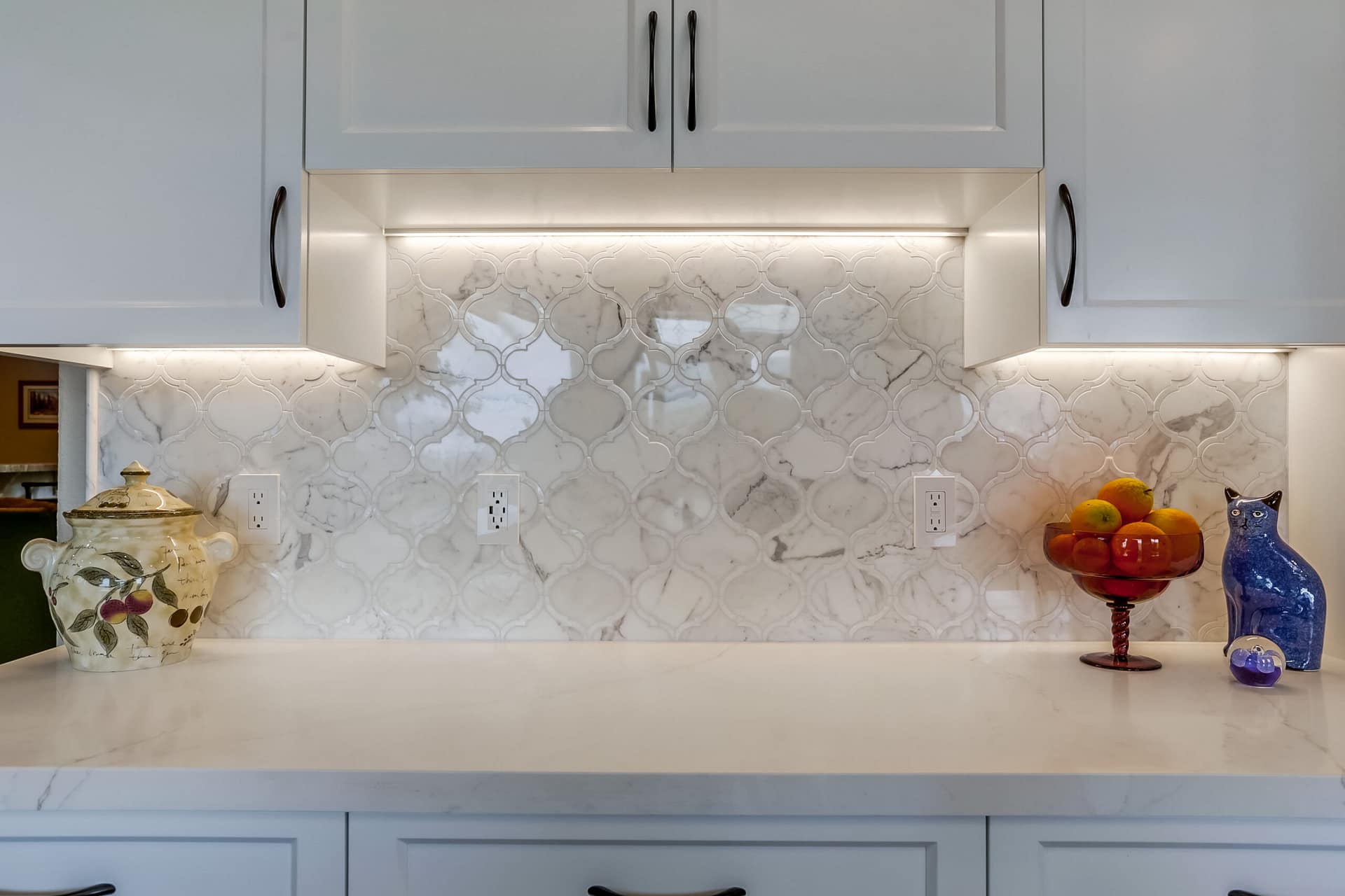 A full kitchen remodel adding a second kitchen island, full bath remodel, and flooring throughout the main areas of the home.