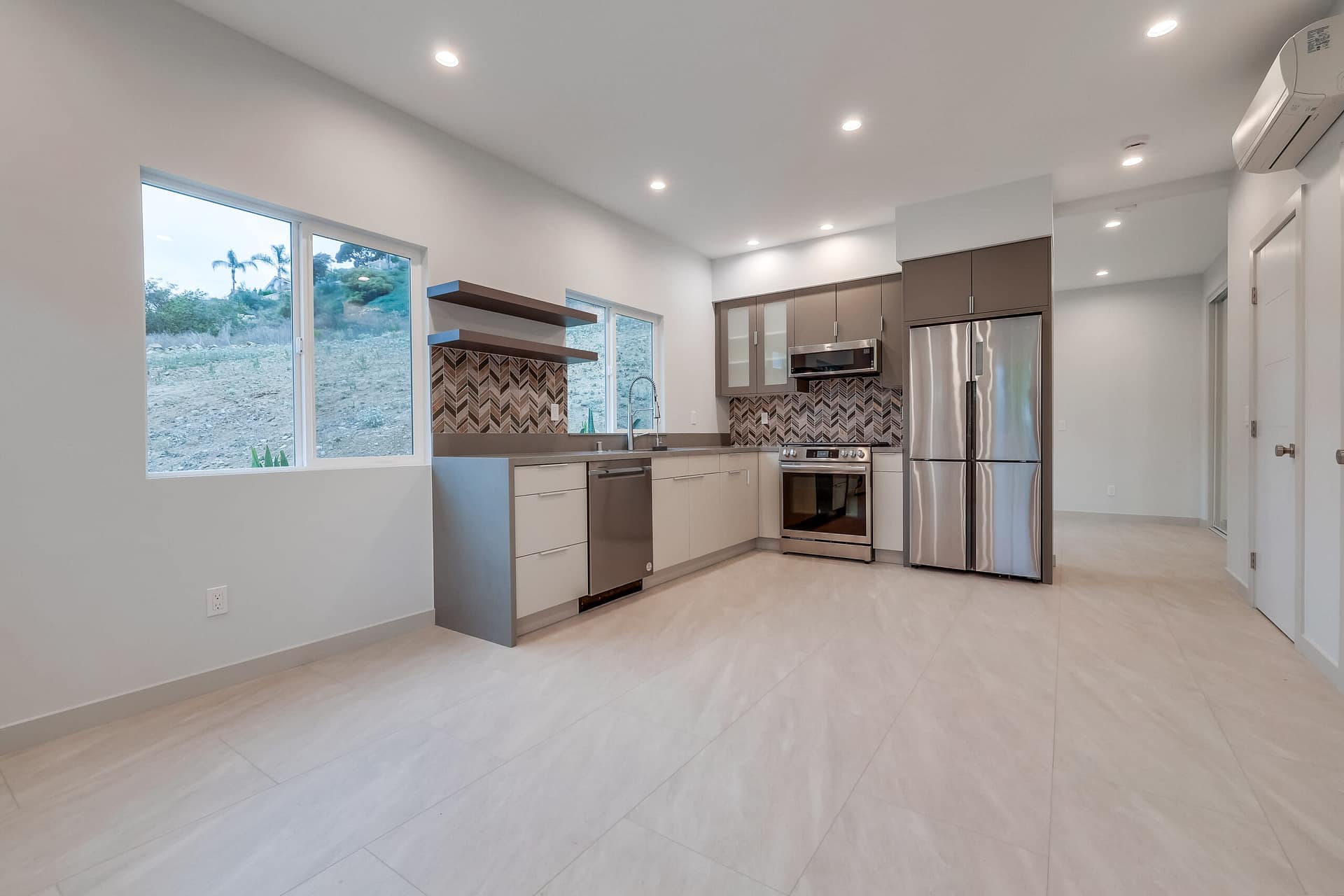 This ADU has room for visiting family and a home office. Amazing views from the rooftop deck. Excavation and retaining walls created space on the lot.