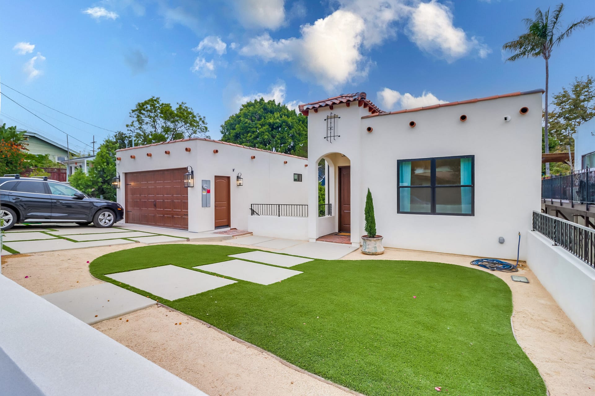 This custom home was designed to a unique below street level lot, with the primary living spaces on the second floor at street level and the sleeping spaces below. The detached garage and workshop have potential for a future JADU conversion. Green Construction Features: a large solar photovoltaic system with batter storage, Energy Star rated cool roofing, and appliances, a high efficiency hybrid heat pump water heater, radiant barrier roof decking, and upgraded insulation for energy efficiency and interior sound dampening.